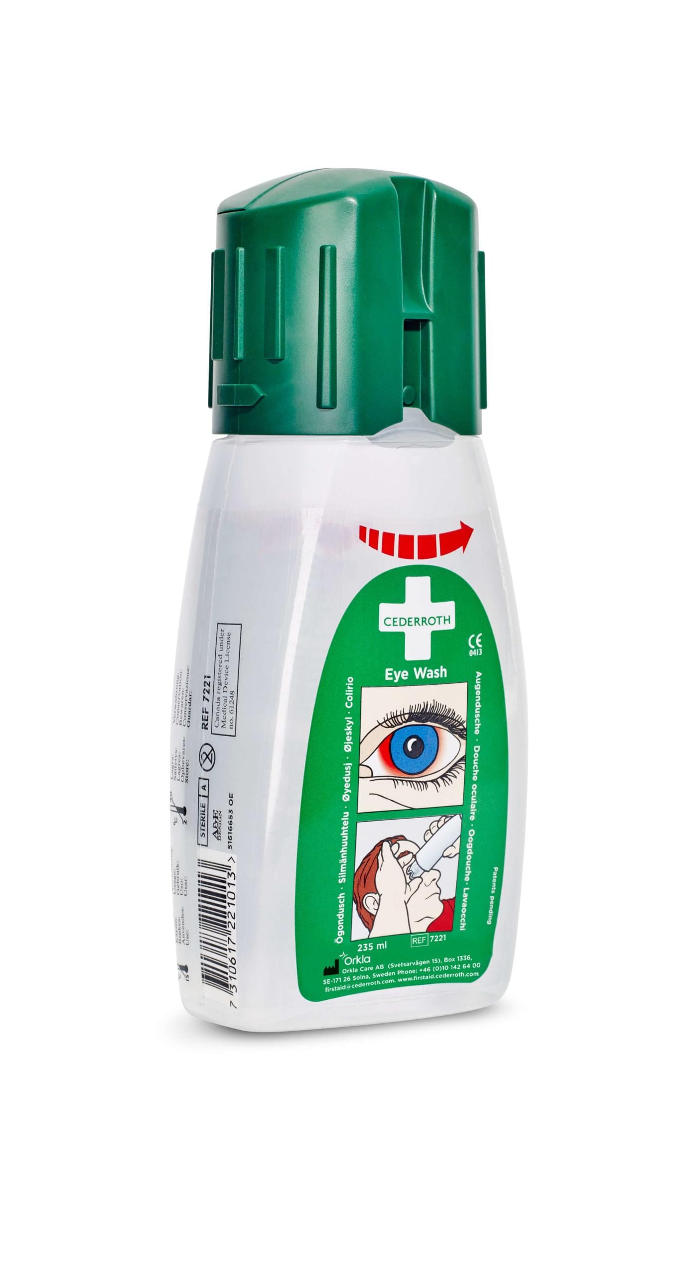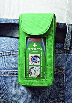 Henkilökohtainen silmänhuuhtelupullo taskukoossa, helppo pitää mukana taskussa tai vyökotelossa. Nopeasti saatavilla onnettomuuden sattuessa.