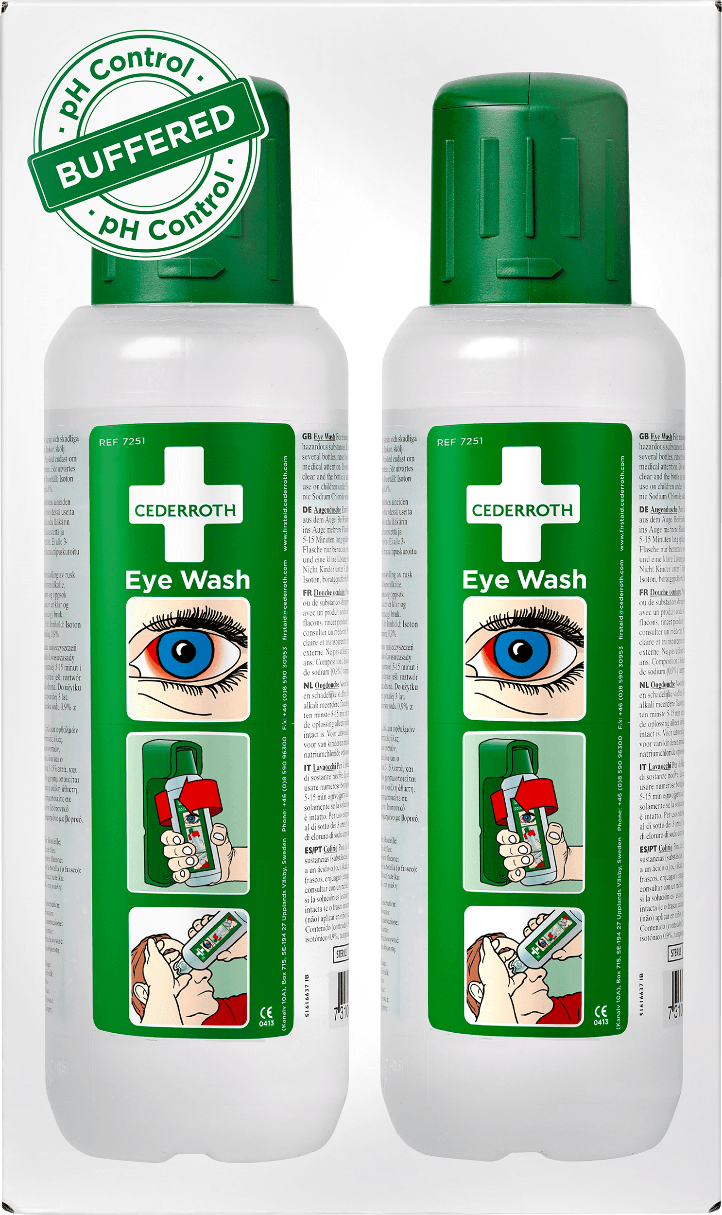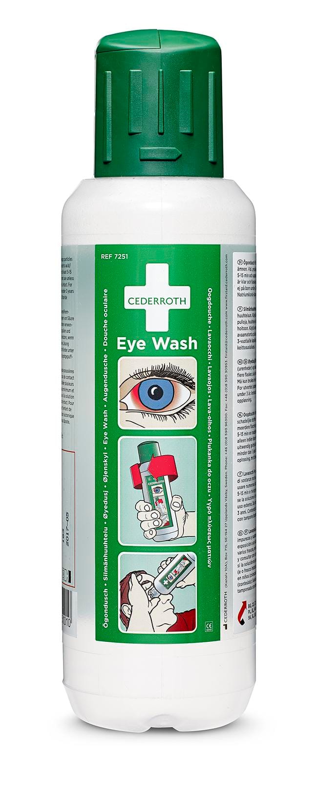 Cederrothin silmänhuuhteluneste vaikuttaa neutraloivasti silmän pH-arvoon, eli sillä on neutraloiva vaikutus emäs- ja happoroiskeisiin, joten sillä saadaan nopeampi lopputulos kuin tavallisella keittosuolaliuoksella. Se vaikuttaa yleensä voimakkaammin emäksiin kuin happoihin. Säilyvyysaika 4,5 vuotta. Jos onnettomuudessa on mukana kalsiumpitoista ainetta (sementtiä, betonia tai kalkkia), silmän voi turvallisesti huuhdella Cederrothin silmänhuuhtelunesteellä, sillä se on 100 % fosfaatiton.