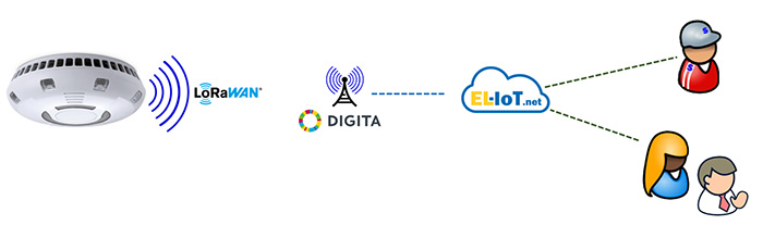 • tieto kulkee radioteitse kaikkialta Suomesta Digitan LoRaWAN-tukiasemalle