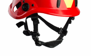 Palonkestävä, 6:sta kohdasta säädettävä leukaremmi. Leukaremmi on irrotettavissa kypärästä.