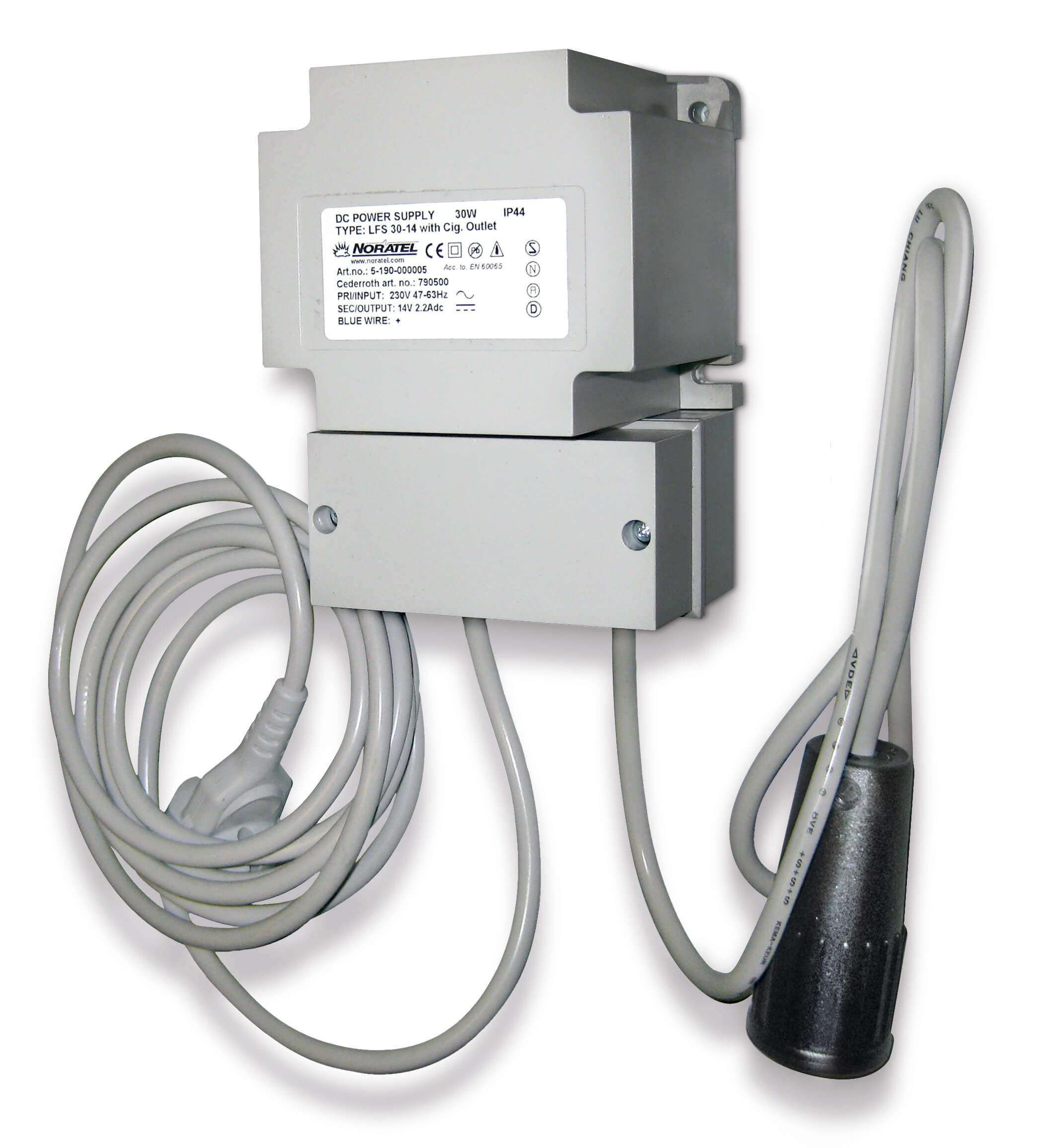 Muuntaja lämpökaapille. Kaksinkertainen eristys kylmyyttä vastaan. Kapselointiluokka IP44. 230 V / 14 V DC, 30 W.
