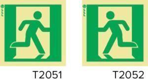 Seinään (pystysuora asennus) kiinnitettävä, matalalle sijoitettava poistumisreittiopaste.