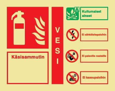 Tunnistekilvet ovat vaakasuuntaisesti asemoitu ja niissä on tyhjä tila palosammuttimen kuvatunnuksen alla vasemmassa alakulmassa. Tähän tyhjään tilaan sopii enintään 3 numeroa. Numerot on painettu mustalla itseliimautuvaan läpinäkyvään vinyyliin. Alkusammuttimessa ja tunnistekilvessä pitää olla samat numerot, jotta alkusammuttimen pysyminen alkuperäisellä paikalla varmistetaan eikä sitä sekoiteta toiseen alkusammuttimeen.