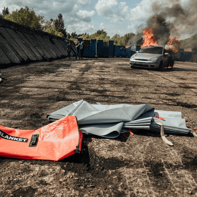 Suosittelemme, että autopalopeitettä käyttäisi vain ammattipelastajat tai koulutettu turvahenkilöstö. Autopalopeitteen käyttämiseen tarvitaan kaksi henkilöä.