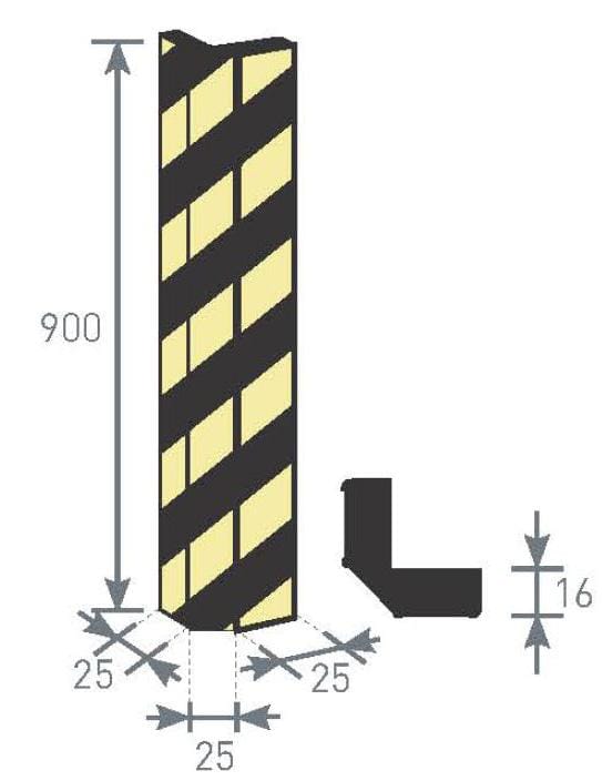 • mitat 900 x 25 x 25 x 25 x 16 mm