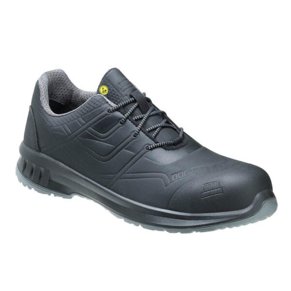 Erittäin kevyt mikrokuitu, kohokuviointi, hyvä istuvuus saumattoman rakenteen ansiosta, vahvistettu kulutusta kestävä TPU-kärki, metalliton rakenne, STEITZ FLEXO -kiinnitysjärjestelmä ja perinteiset nauhat vakiona, toiminnallinen vuori hengittävää tekstiiliä ja mikrokuitua, vaihdettava ja mukava sisäpohjallinen ERGO-SOFT ESD. Lyömätöntä turvallisuutta lenkkarilookilla!